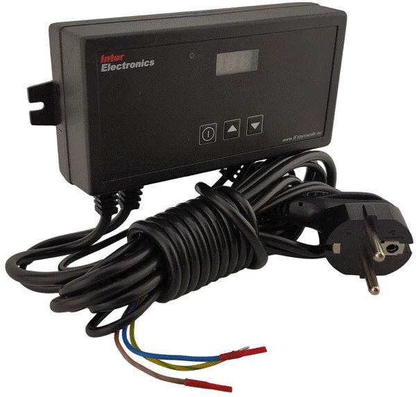 Автоматика Inter Electronics IE-22 v1 з дисплеєм призначена для управління насосом циркуляції води опалення. Завданням регулятора є включення насоса, якщо температура отримує задане значення, а також виключення його, якщо температура падає нижче заданої на 3 °С (величину гістерезису). Такий режим роботи допомагає уникнути непотрібної роботи насоса, що дозволяє заощадити електроенергію, а також подовжує термін служби насоса і підвищує його надійність.